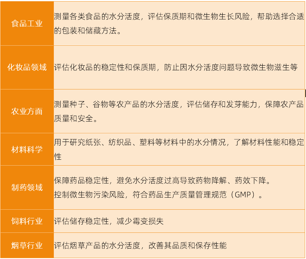 水分活度是指食品中水分存在的状态,及水分与食品结合程度。水分活度值越高,结合程度越低;水分活度值越低,结合程度越高。水分活度是食品测量的一项重要指标,对食品安全的控制具有非常重要的作用。